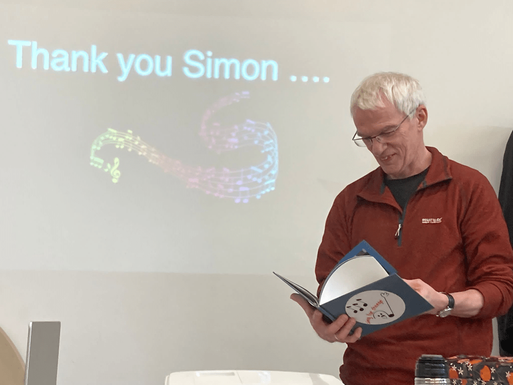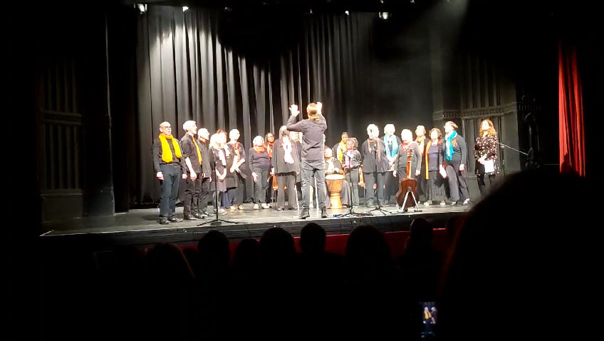 It was challenging to sing on the stage of a real theatre, in front of a large audience which we couldn’t see because of the lights! But Joe directed us well and we came through. Thanks also to Simon for supporting the basses!